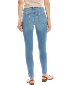 - Josefina Feminine Boyfriend in light indigo with belt loops, whiskering and fading details, distressed left knee, and classic five-pocket styling
