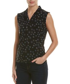 - Design details: pleated V-neck