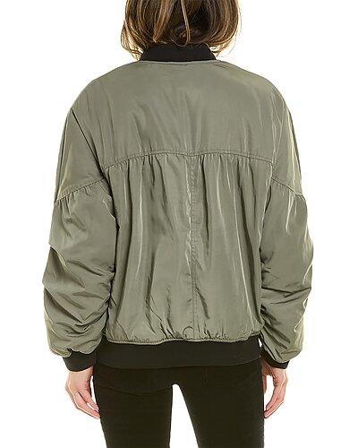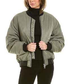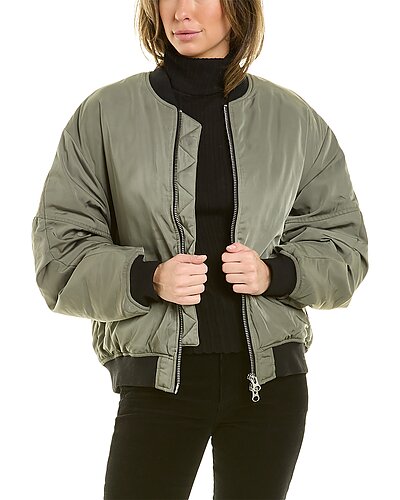 - Pili Bomber Jacket in kaki with quilted design, dual front pockets, and ribbed trim