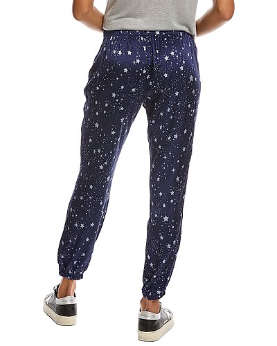- Stretch Silky Basics Relaxed Jogger Pant in star with printed satin fabric and drawstring waist