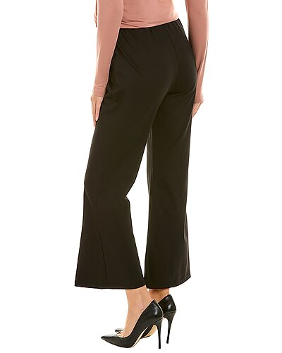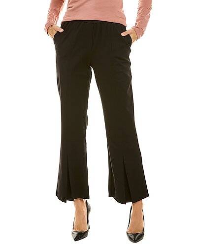 - Pull-On Straight Pant in black with elasticized waistband, side seam pockets, and pleated hem