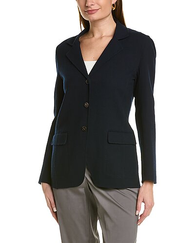 - Rogers Wool Blazer in ink with notch lapel, dual front pockets, elasticized back waistband, and button cuffs