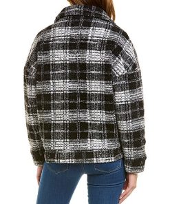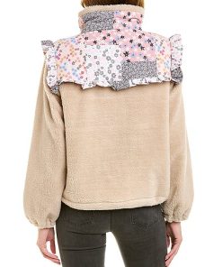 - Teddy Jacket in grey with spread collar, left zip chest pocket, dual front zip pockets, elasticized cuffs, and drawcord hem