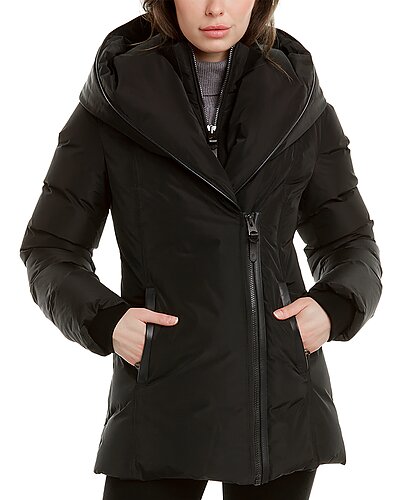 - Design details: an asymmetrical zip closure, leather welt pockets with zippers