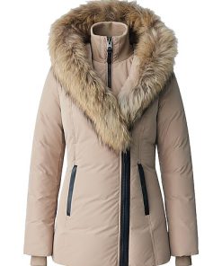 - Design details: collar with natural fur, leather welt pockets with zippers