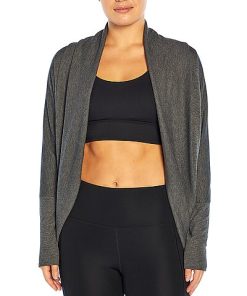 - Reset Cardigan in heather black with plush fleece, easy fit, rib collar and cuffs