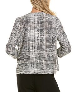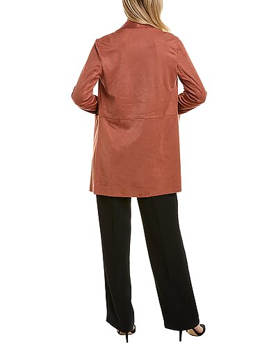 - Design details: waterfall lapel, dual front pockets