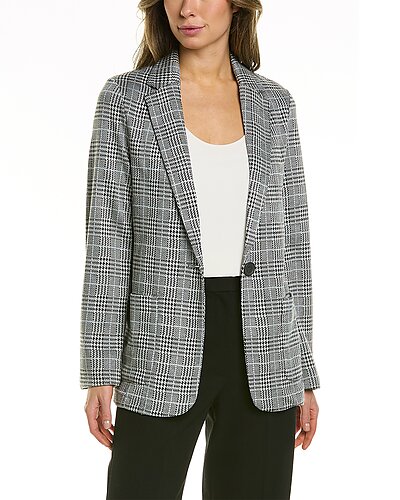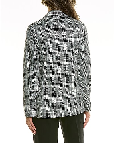 - Double Knit Blazer in black and white glen plaid with notch lapel and two front pockets