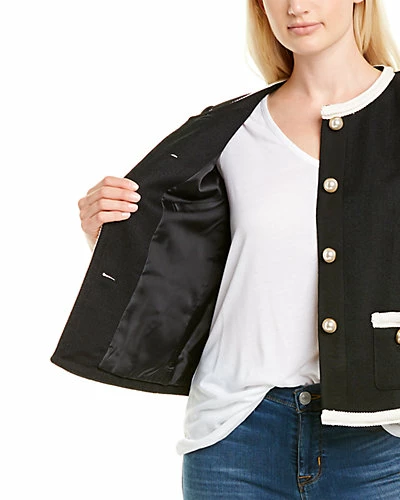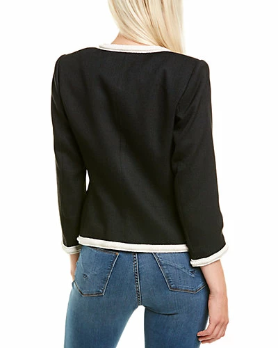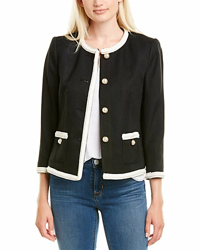 - Design details: braided detailing, grosgrain trim, two front button-through patch pockets