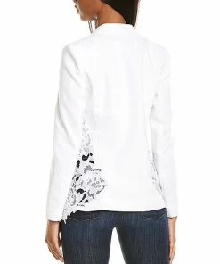 - Moto Jacket in black with faux leather design, dual zip front pockets, and notch lapel