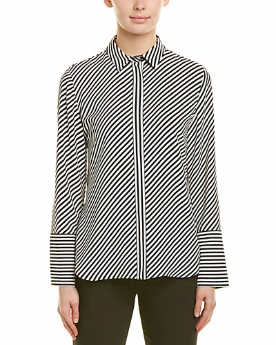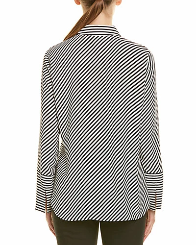 - Design details: spread collar, vented flare cuffs, high-low hem