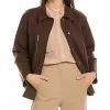 - Design details: mock collar, pleated front, button cuffs, step hem with side slits at seams