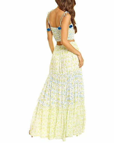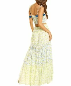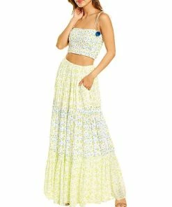 - Design details: dual side angled pockets, tiered hem, and elasticized waist