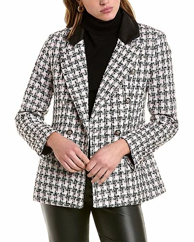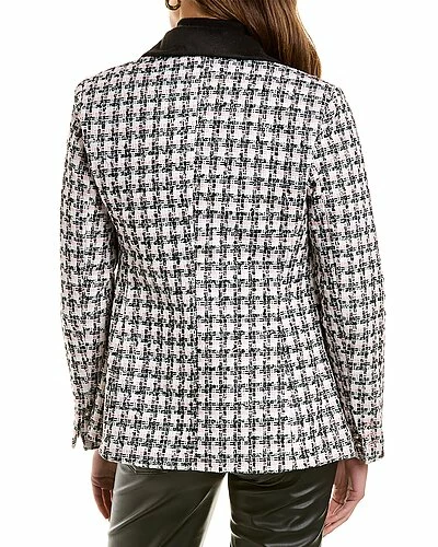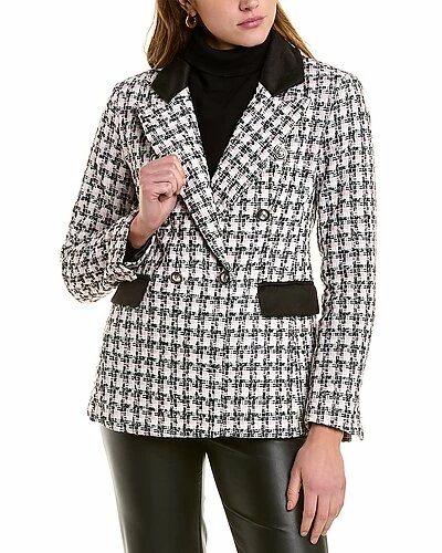 - Design details: two-pocket styling, notch lapel, button cuffs
