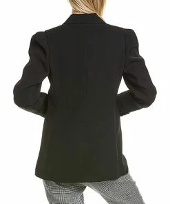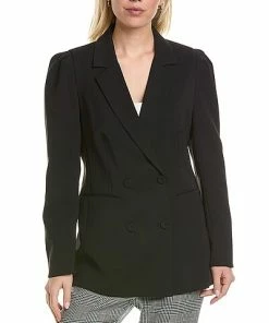 - Double-Breasted Blazer in black with notch lapel and decorative pockets