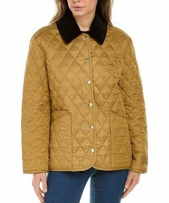 - Corduroy Collar Diamond Quilted Jacket in camel with quilted design, corduroy collar, dual front pockets and patch logo at cuff