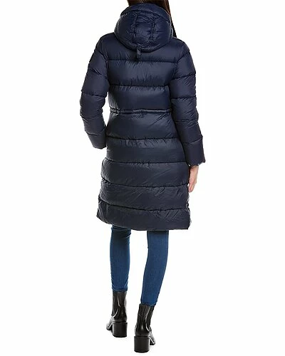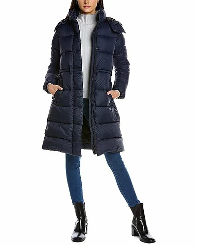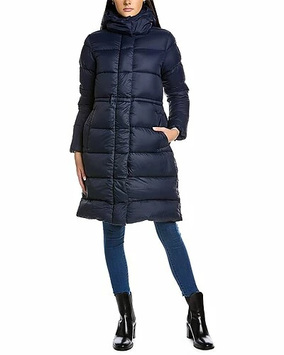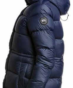 - Arosa Black Label Down Parka with removable down-filled hood in admiral blue is adjustable 2-ways, chin guard is lined with tricot fabric, interior backpack straps allow jacket, black tonal Canada goose disc logo