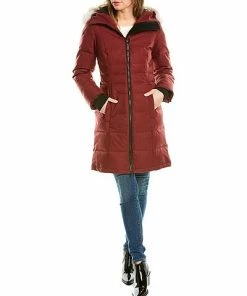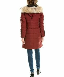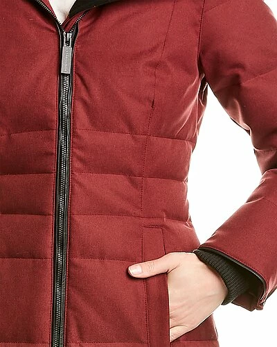 - Pembina Down Coat in bordeaux with interior backpack straps allow jacket to be carried, 2 exterior pockets, 1 interior pocket, adjustable down-filled tunnel hood adds warmth and element protection