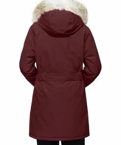 - Removable down-filled hood is adjustable 2-ways and adds warmth and element protection. Removable fur ruff with a shaping wire stands up to harsh windsChin guard is lined with tricot fabric for softness and comfortInterior backpack straps allow jacket to be carried hands-free over the shouldersWaist features interior drawcord to customize fit and allow for easy layering. Back of waist is elasticized for enhanced fit and comfortRecessed rib-knit cuffs add comfort and lock in heatPlacket with snap closures over 2-way zipper keeps the elements out. Unzip from the bottom for added range of motion or venting4 exterior pockets:2 fleece-lined handwarmer pockets, 2 lower pockets with flaps1 interior pocket: security pocket with zipper closure