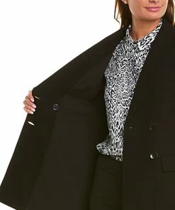 - Design details: peak lapel, left chest pocket, dual front pockets, and button cuffs