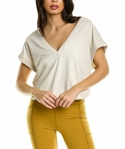 - Nothing But Sweats Top in oatmeal heather with V-neck and cap sleeves