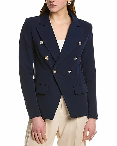 - Design details: peak lapel and two front pockets