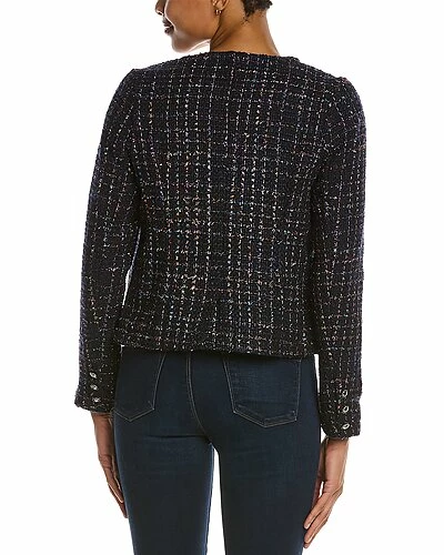 - Jacket in navy with embellished buttons, four pockets, and tweed fabric