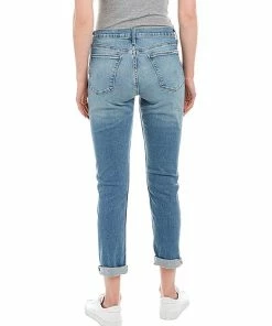 - Natalie Slim Boyfriend Crop in honey bee with belt loops, whiskering and fading details, cuffed hem, and classic five-pocket styling