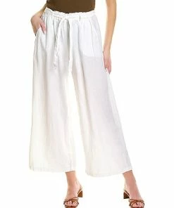- Paperbag Linen Pant in white with paperbag waist and sash, and dual side pockets