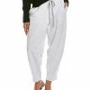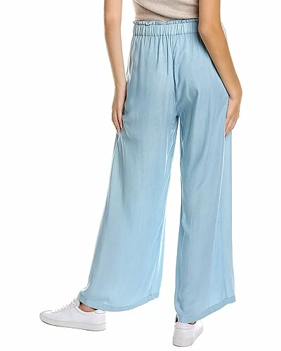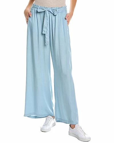 - Paperbag Pant in light blue with dual front angled pockets, elasticized paperbag waist, and sash