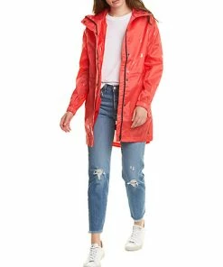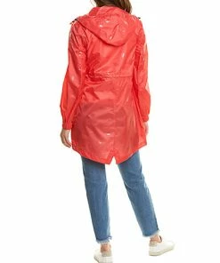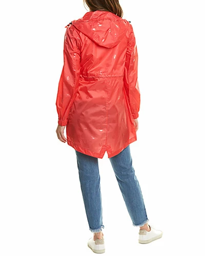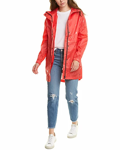 - Design details: hooded back, two front pockets, inner drawstring at waist, elasticized cuffs and high-low hem with center back slit