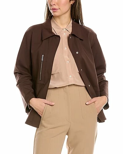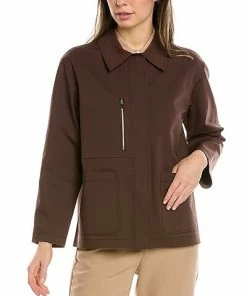 - Huntington Jacket in rustic brown with spread collar, zippered right chest pocket, and dual front pockets