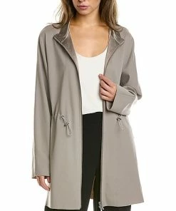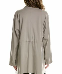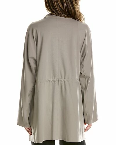 - Lovetta Jacket in osprey with stand-up collar, drawcord waistband, dual front zip pockets, and raw edge trim