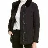 - Teddy Bomber Jacket in new plaid black with spread collar, three front zip pockets, and elasticized cuffs