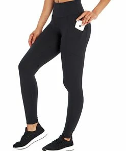 - Design details: 4″ Curved Tummy Control Waistband Lined with Powermesh; Self Side Seam Pockets; Fitted; Gusset