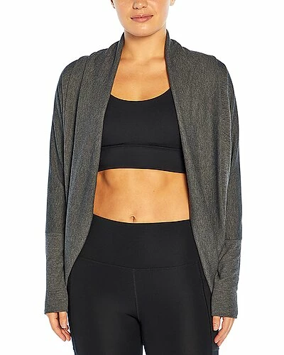 - Reset Cardigan in heather black with plush fleece, easy fit, rib collar and cuffs