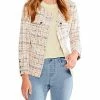 - Double Knit Blazer in black and white glen plaid with notch lapel and two front pockets