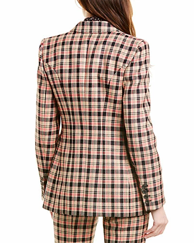 - Design details: peak lapel, two front pockets, button cuffs, princess seams at back