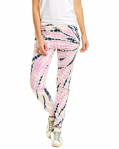 - Bamboo Burst Tie-Dye Girlfriend Sweatpant in hot pink with elasticized drawstring waist and two front pockets