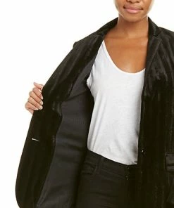 - Design details: velvet design; notch lapel; two front flap pockets; side vents at back hem