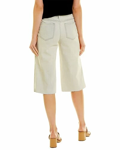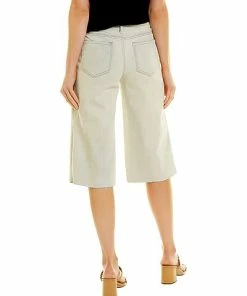 - Knee Capri in equinox wash with belt loops, whiskering and fading details, raw edge hem, and classic five-pocket styling