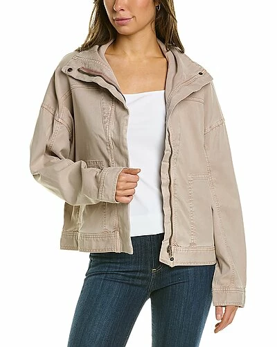 - Funnel Neck Jacket in latte with funnel neck and two front pockets