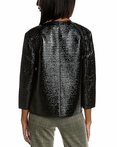 - Laminated Tweed Jacket in black with 3/4-length sleeves and patch pockets