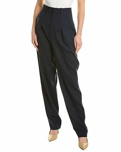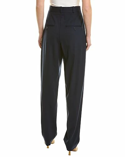 - Suiting Wool-Blend Pant in navy with seamed leg, dual front angled pockets, dual back welt pockets, and belt loops
