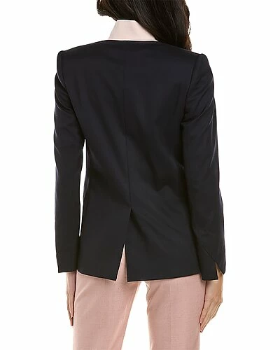 - Florence Wool Jacket in navy with notch lapel, left chest pocket, dual front pockets, vented cuffs, and vented back hem