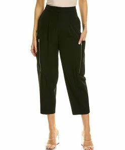 - Liv Wool Trouser in black with dual side on-seam pockets and dual side cargo pockets