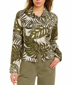 - Safari Bliss Linen Jacket in tea leaf with dual chest pockets and snap cuffs