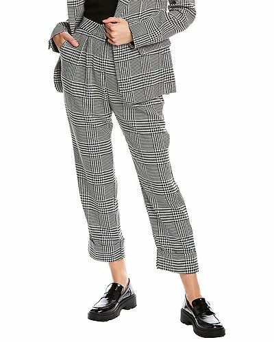 - Gilded Pant in black & ivory with pleated leg, rolled cuffs, dual front angled pockets, and dual back welt pockets