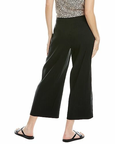 - Cropped Wide Leg Linen-Blend Pant in black with side seam pockets