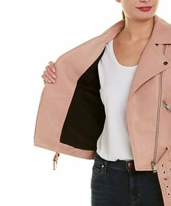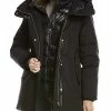 - Design details: notch lapel, epaulettes, three zippered front pockets, zippered cuffs, belted hem